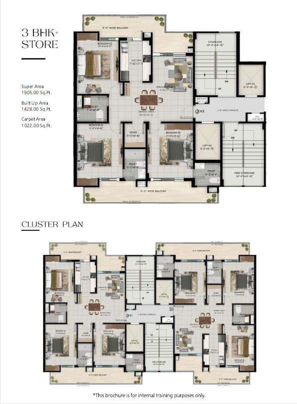 | Type 3 BHK Flats / Apartments | Super Area 1905 Sq.ft. | Price 1.24 Cr. | Floor Plan